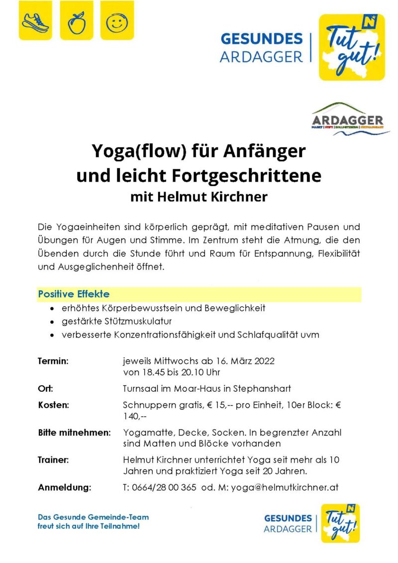 Die Gesunde Kleinregion Donau-Ybbsfeld möchte 2022 ihr 20-jähriges Jubiläum mit einem Bündel an Gemeinde-übergreifenden Veranstaltungen begehen. Dabei sollen unter anderem die Gemeinde-eigenen Ressourcen an Gesundheits- & Fitnessanbietern genutzt werden, um unsere BürgerInnen auf die Vielfalt des hochwertigen, gesundheitlichen