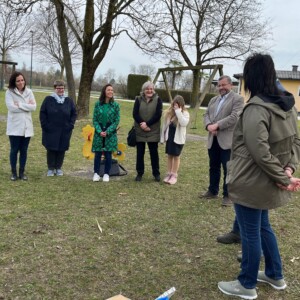 Gesamtfoto: am Stiegenaufgang vlnr: GGR Monika Raffetseder (Ardagger), GGR Elisabeth Stelzeneder (Neustadtl), Andrea Hebesberger (Regionalberaterin Tut-Gut NÖ), LEADER Region Ilona Wenzl (Projektleiterin Moststraße), GGR Viktoria Reiter (Ferschnitz), Vize-BGM Anita Pitzl, BGM Albert Brandstetter (beide Blindenmarkt), vorne vlnr: BGM Franz Kriener (Neustadtl), GGR Michaela Salzmann-Naderer (Ardagger), GGR Maria Seisenbacher (Viehdorf), Vize-BGM Hermine Berger (Ferschnitz), Ulrich Schmalzl (Direktor NMS Blindenmarkt), Kleinregions-BGM Johannes Pressl (Ardagger), Sozialsprecherin Karin Ebner (St. Georgen), GGR Martina Gaind (Blindenmarkt), Simone Hofbauer (Klinische Heilpädagogin), junge Künstlerin Anna Affengruber (Ferschnitz), Vize-BGM Karin Grünberger, BGM Christoph Haselsteiner (beide St. Georgen)