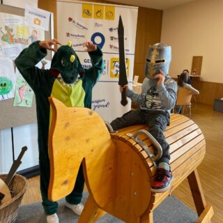 An einer Fotostation konnten sich die Kinder sogar als “Heiliger Georg und der Drache” als Sinnbild für den Einsatz um unsere Gesundheit fotografieren lassen und durften ihr Foto auch gleich mitnehmen.