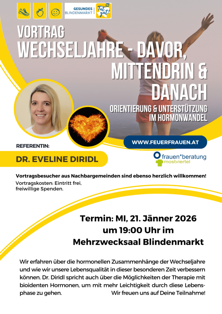 Vortrag: Wechseljahre – Davor, Mittendrin & Danach am 21.1.2026 in Blindenmarkt